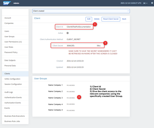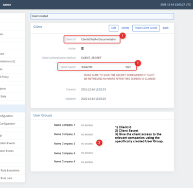 Create an OAuth Client and assign the new Admin Policy Group above to the client in the company of your choice.