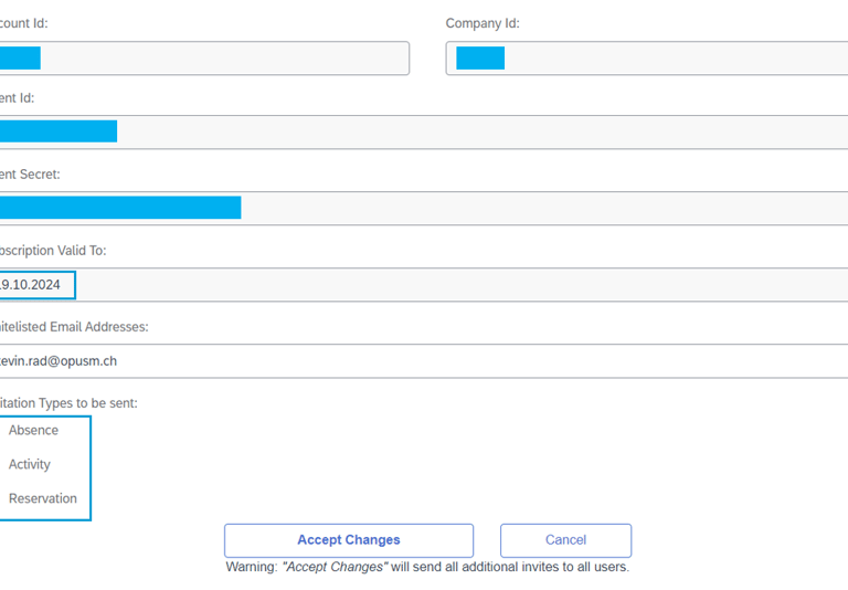 FSMinviteOut replicates FSM Planning Board Events (Reservations, Abscesses and Released Assignments) from SAP FSM to Outlook